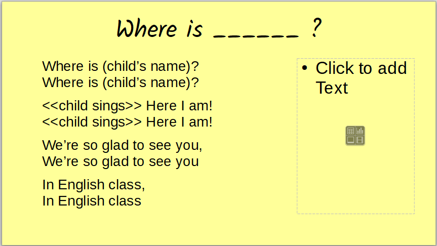 Song: Greetings – Where is _______ ? Share this: Click to share on X (Opens in new window) X Click to share on Facebook (Opens in new window) Facebook Like Loading... Related
